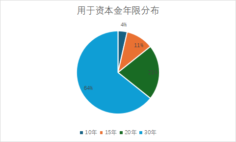 本次专项债券发行十二至十七期中共计28个项目通过发行专项债券募集项目资本金。总共发行金额25.66亿元,占全部发行金额的10.98%。用于资本金的项目绝大多数采用了长期限的债券品种,债券期限20年和30年的项目合计24个。具体各年限项目分布情况如下图所示: