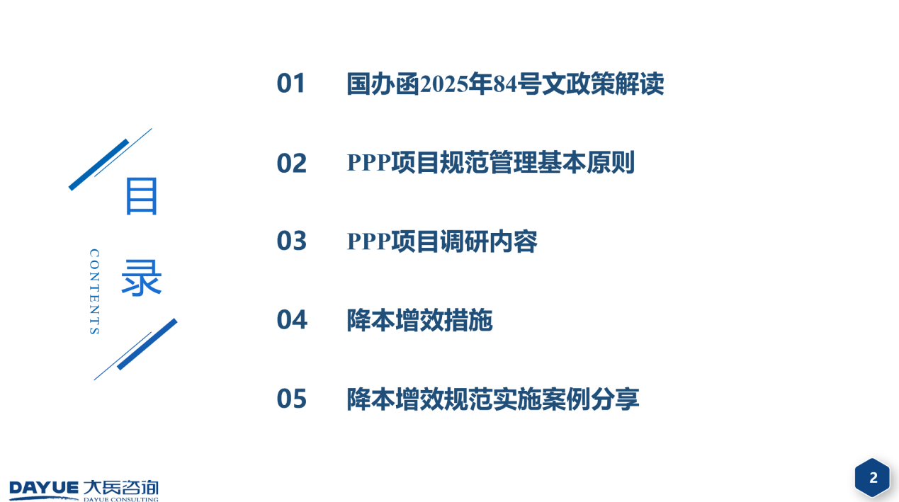 杜经理从国办函2025年84号文件解读、PPP项目规范管理基本原则分析、存量PPP项目调研内容、降本增效措施、降本增效规范实施案例分享等方面对存量PPP项目的规范实施工作进行了全面介绍,同时对存量PPP项目存在的问题进行了梳理分析,并给出了初步建议。