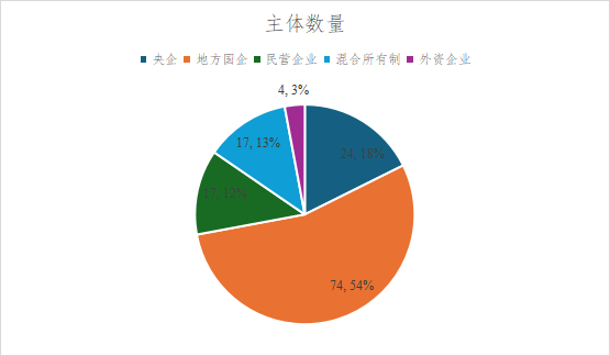 在上述已发行的REITs项目中,原始权益人以央国企为主,合计占比达到72%,其中:地方国企占比最高,达到54%,主导了产业园区、收费公路等传统领域项目,并广泛参与仓储物流、新能源、水利、消费基础设施等多个行业;央企占比18%,主要为招商局、国家电投、华润、中国电建、中国交建、中核集团等企业,涵盖收费公路、产业园、保租房、新能源等领域。