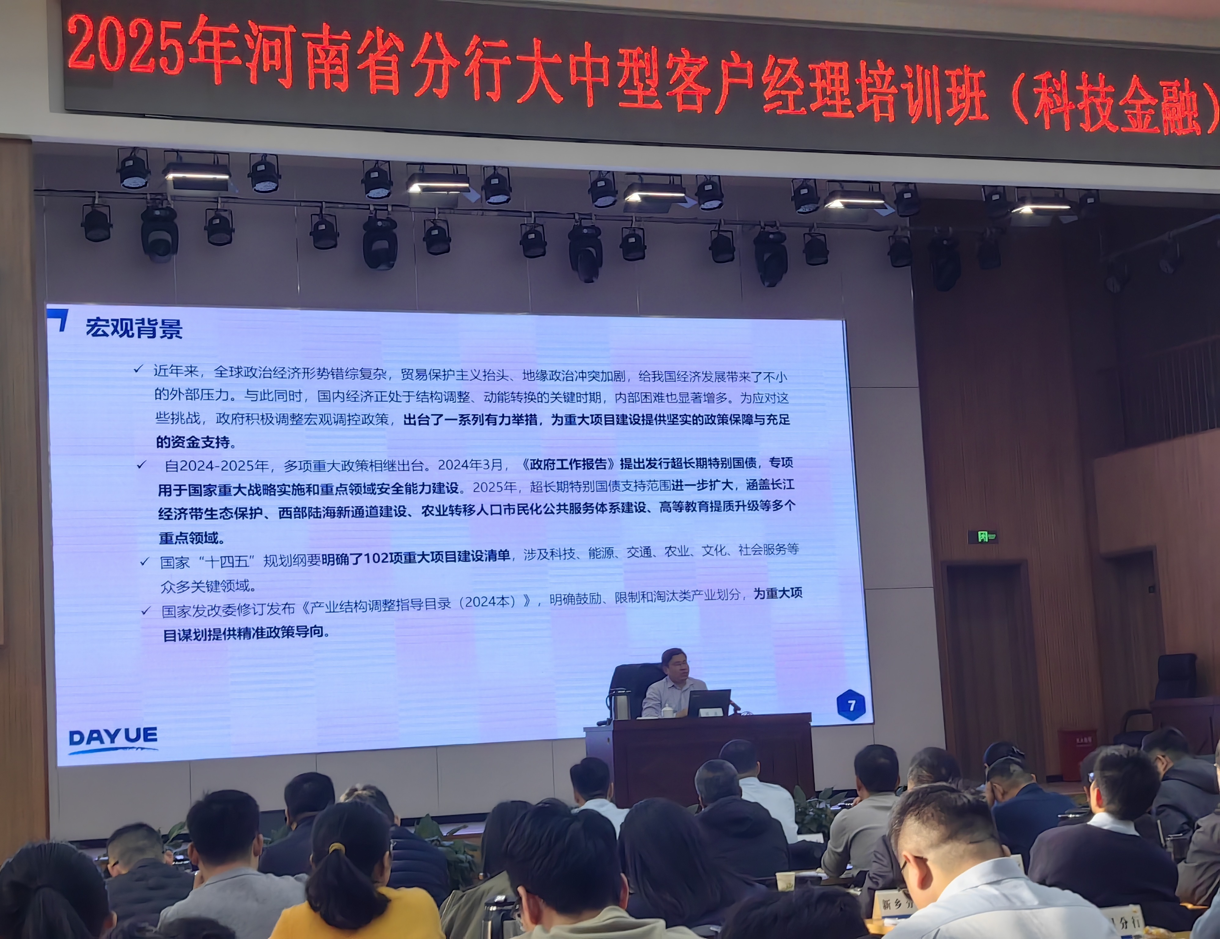 为推动全行科技金融业务快速健康发展,建设银行河南省分行于2025年11月26日-28日举办“2025年河南省分行业务部大中型客户经理培训班(科技金融)”。大岳咨询董事总经理刘冰应邀就“新形势下金融机构参与地方基础设施投融资模式与典型案例"作专题分享,来自省分行及各分支机构的100余名大中型客户经理参加培训。